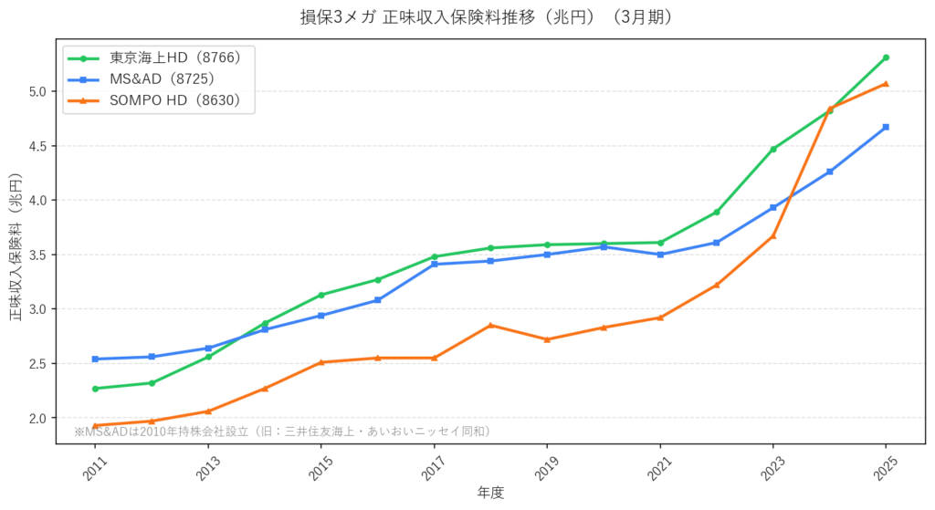 出典:各社決算短信 ― IRBANK(東京海上HD)・IRBANK(MS&AD)・IRBANK(SOMPO)