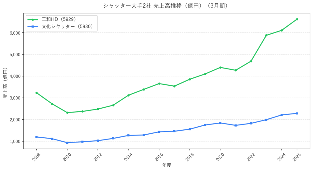 出典:各社決算短信 ― IRBANK(三和HD)・IRBANK(文化シヤッター)