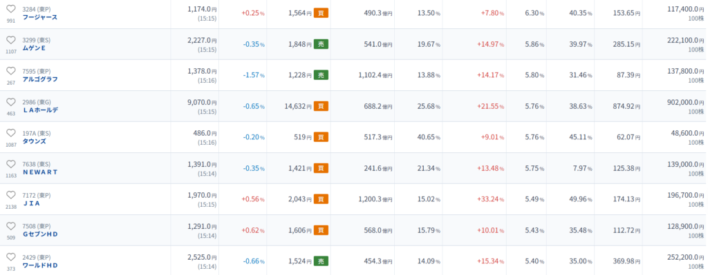 - スクリーニング16件のうち、不動産業が過半数を占める(3284・3299・2986)