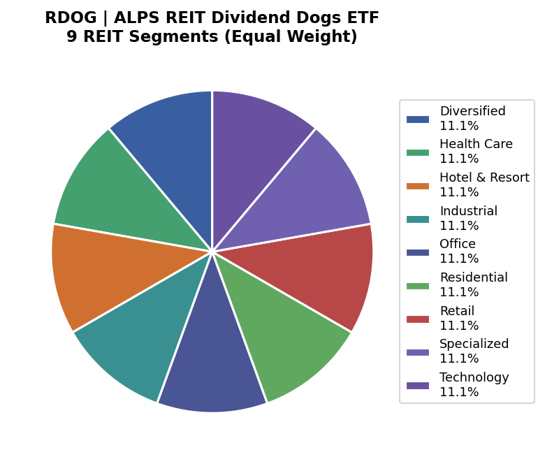 9セグメントを均等配分(各約11.1%):Diversified・Health Care・Hotel & Resort・Industrial・Office・Residential・Retail・Specialized・Technology