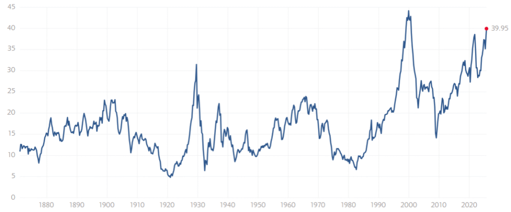 ドットコムバブル時に記録した44が今の所一番高い値となっています。