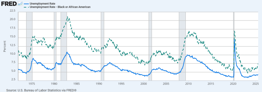 現在、米国の黒人の失業率が景気後退期以外の時期では異例の速さで上昇しています。