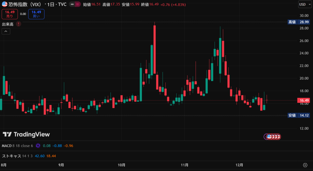 11月にも行いましたが、恐怖指数に投資のチャンスがあるのではないかと考えたため、リスクの低い投資であるのか、市場の動向を踏まえて判断していきたいと思います。